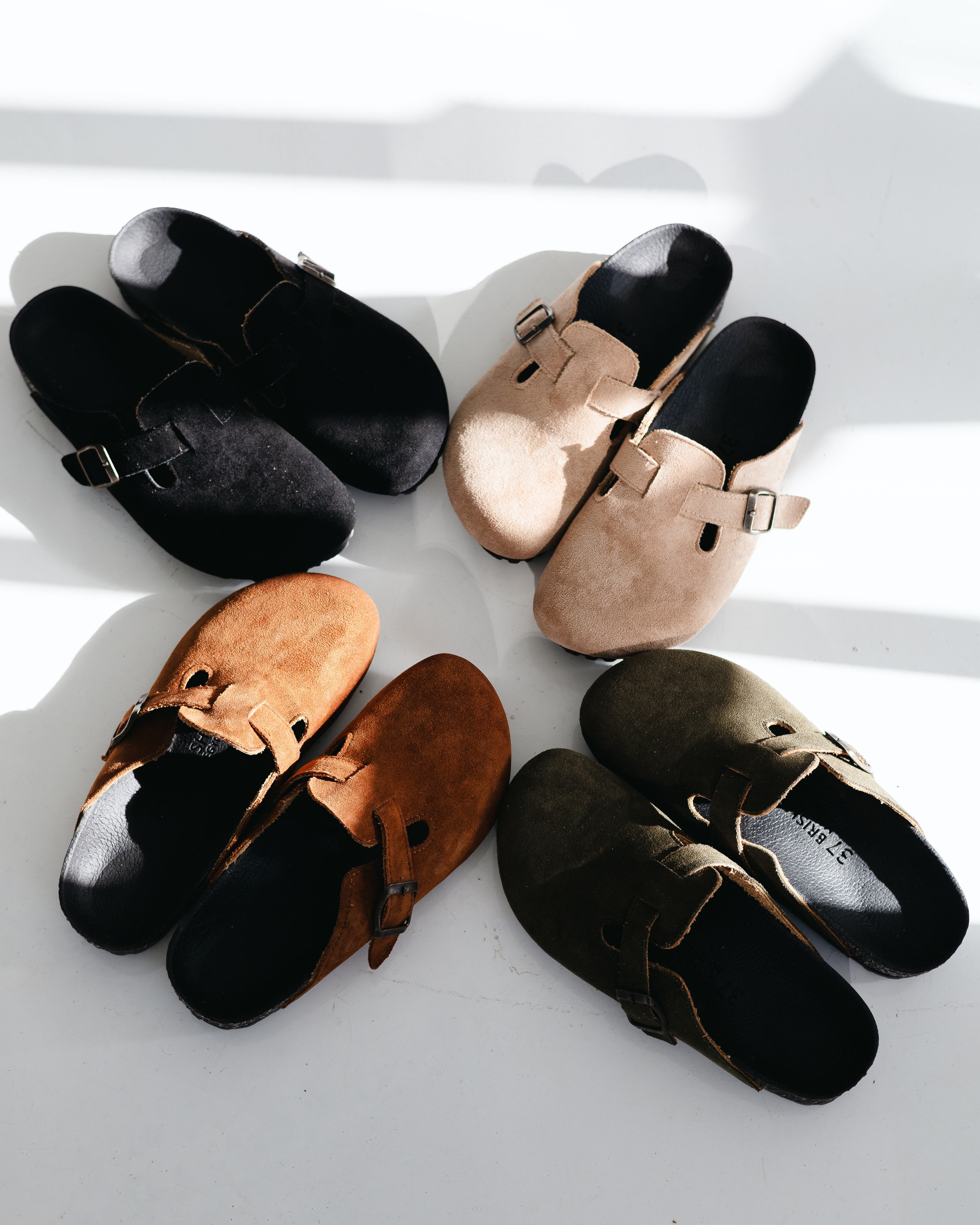 شبشب شامواه أنيق بتصميم مغلق من الأمام ومشبك معدني جانبي، يمنحك راحة وأناقة في كل خطوة.