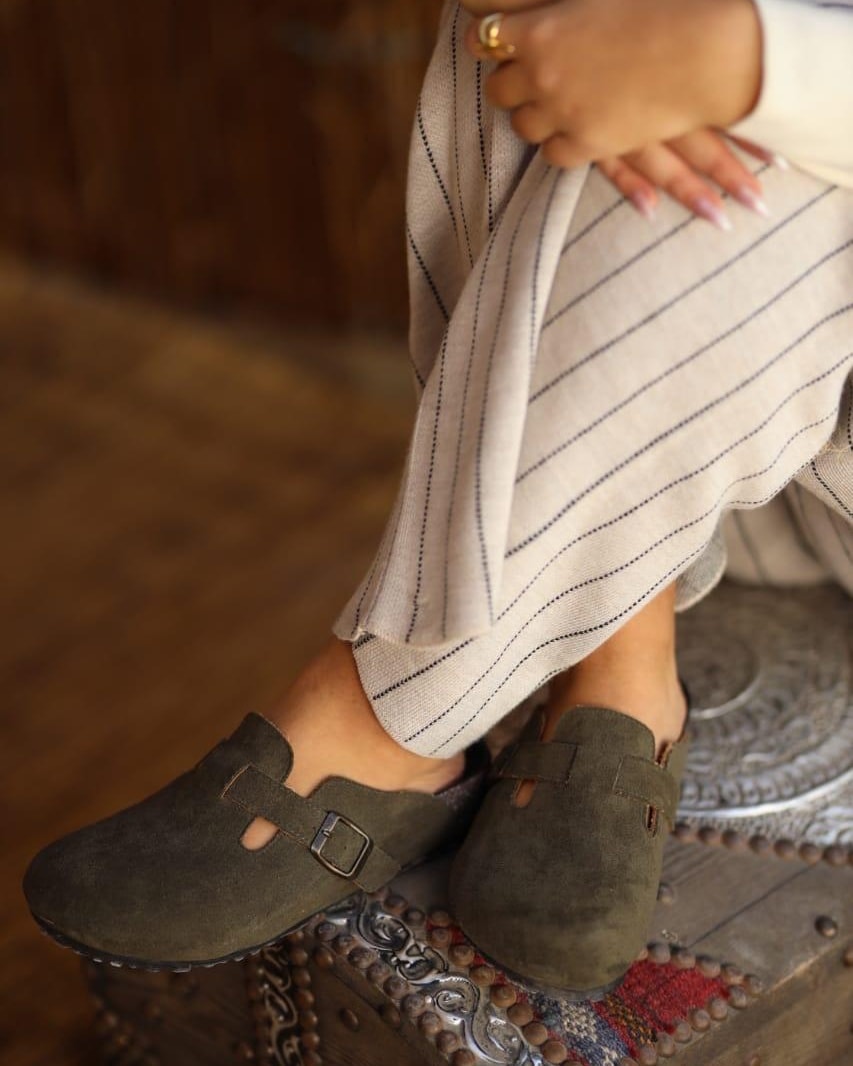 شبشب شامواه أنيق بتصميم مغلق من الأمام ومشبك معدني جانبي، يمنحك راحة وأناقة في كل خطوة.