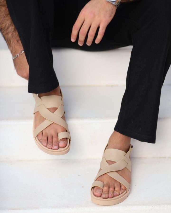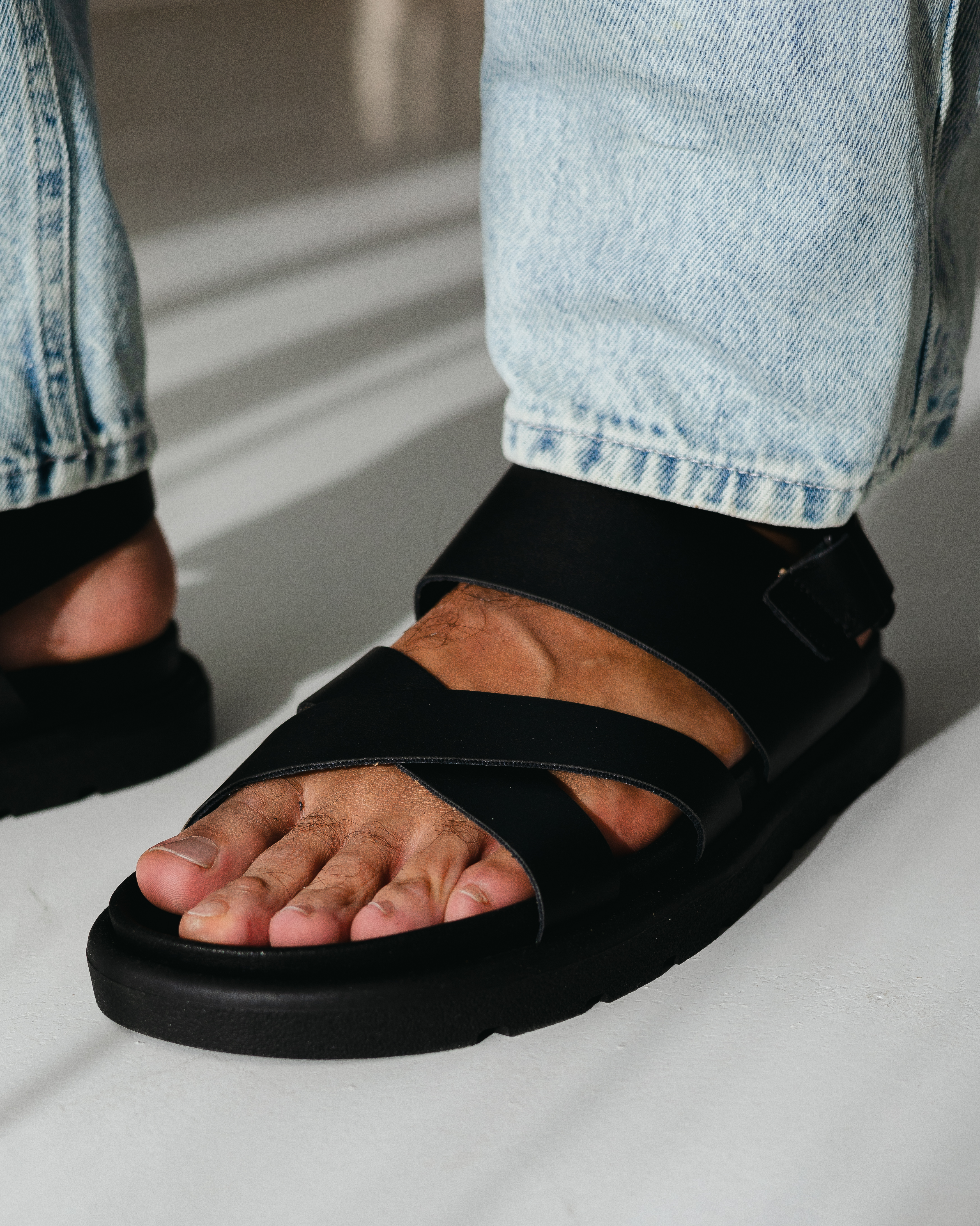 شبشب جلد طبيعي بتصميم عصري بسيط بخطين عريضين، مريح وخفيف، مثالي للاستخدام اليومي ويمنحك إطلالة أنيقة وعملية.